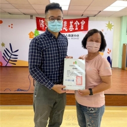 衛生福利部彰化老人養護中心院長陳智偉致贈感謝狀給洪國庭、張鈴珠、張家盛,讚歎佛光山「以慈善福利社會」的宗旨,更感謝佛光山福山寺義工團隊、彰化社區大學師生們廣行三好四給,長年來無私的奉獻與犧牲,豐富中心長者的心靈財富,帶給長者們滿滿的歡喜。