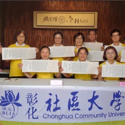 彰化社區大學「快樂讀書趣社」6月10日,在陳璿宇老師帶領10位社員參訪台南後壁空相美術館,觀賞藝術家施金輝、林穎英的作品。社員走讀美術館,從藝術家生命的創作歷程,品味〈三十三觀音〉的慈悲與智慧,透過手碟樂音體悟空靈與療癒身心,品茗茶香、臨帖抄經沉澱洗滌,社員滿心歡喜過過愉悅的假日。