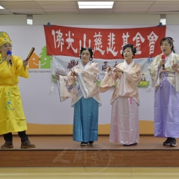 如輝法師帶領彰化社大師生群表演才藝,實踐「以文化弘揚佛法」的人間佛教宗旨。口琴班張家盛師生,以口琴、薩克斯風合奏〈茉莉花〉,開啟音樂饗宴;歌仔舞樂劇坊張雅娟師生盛裝艷抹,以〈狀元樓〉、〈七字調〉、〈送蓮花〉等腔調表演《彰化之歌》,吸引長者目光,回味久違的歌仔戲。