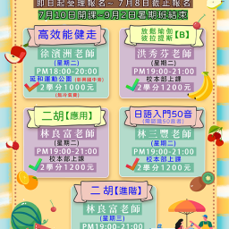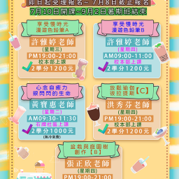 暑期班期程:自7/10(一)至9/2(六)止,計8週課程。
