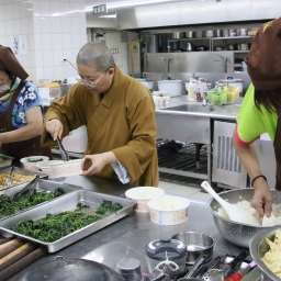 推著未滿周歲的女兒蔡昀浠一起加入製辦蔬食便當行列的「食農教育–慢蔬活」班學員倪雯秋說,這不僅僅是一次簡單的送餐活動,更多的是實踐星雲大師所倡導的「三好」運動,透過親自參與公益活動,期能讓孩子從小耳濡目染「做好事、說好話、存好心」,將來能主動關懷他人、弘揚善行。