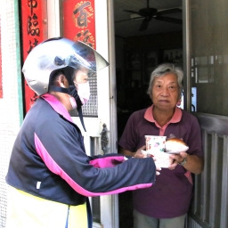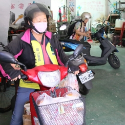 將餐點置放在機車,隻身騎車挨家挨戶地送達重陽愛心餐的郭金主說,延續先夫福山里前里長周文樹的善念,每天中午送餐給獨居長輩,讓他們的兒女免於擔憂家中長輩中午無餐可食的煩惱,放心地出門上班。歡喜接受重陽愛心餐的80歲長輩陳瓊玉說,感謝彰化社大準備豐盛餐點,在志工陪伴下歡樂度過九九重陽節。