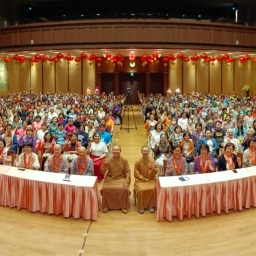 為表感謝法師教育之恩,國際佛光會檀講師陳璿宇獻花給慧開法師。功德主李照民表示,感謝慧開法師精闢講說,老病死生是每一個人一生都會面對的人生大事,認識《佛說阿彌陀經》的修持奧秘,讓人來得歡喜;生命終了,也能走得瀟灑自在。