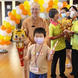 隨後,義工老師依序點名,將孩子們分為「歡喜隊」和「自在隊」,並說明出席與獎勵制度,讓他們更有學習目標。在唱誦〈文殊心咒〉的聲音中,孩子們排隊入堂,恭敬行禮,家長也共同參與,感受這份莊嚴與喜悅。