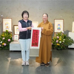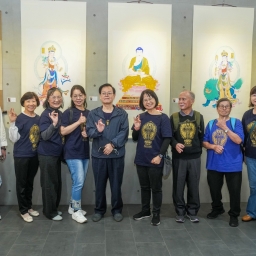 現年76歲的學員李玉英亦參與本次展出。他分享,學習佛畫近五年,從起初毫無基礎、缺乏信心,到在老師與同學鼓勵下努力投入,未曾想能參與聯展。如今其作品深受親友喜愛,甚至有鄰里與太極拳同好爭相收藏。他笑言,其「釋迦牟尼佛」畫作之所以慈眉善目、微笑視眾生,是因為自己參加佛光合唱團,常常以歌聲「唱人間因緣給佛聽」,將歡喜心融入畫中。