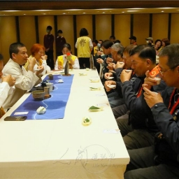 「茶香禪心」單元,茶師敬奉茶湯及茶食給大眾品茗享用,妙宥法師闡述禪意智慧:喝茶也是修行,讓心安住需要方法與練習,靜心品味茶湯滋味,不言不語間便能觀照內心;禪宗祖師經常透過對談啟發心靈,大家以最純淨的心體會當下茶的本味,如同處理事務皆需用心拿捏、取捨得當方能圓滿,村、里長應感恩仍有為人服務的機會,珍惜因緣、積累福報。