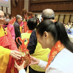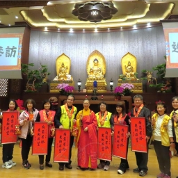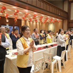 妙宥法師領眾祈福祝禱,致贈平安福袋及星雲大師2025年祝福語「向前有路.光明在望」匾額給村、里長。彰化市延平里里長陳雯嘉分享福進入社區合作辦理講座、浴佛、臘八粥等活動的收穫:感謝妙宥法師與諸位法師兩年來對延平里的關懷,居民無不期待能再參與提升視野、淨化心靈的活動,鼓勵各位村、里長多與彰化社區大學合作,攜手共榮、嘉惠百姓。