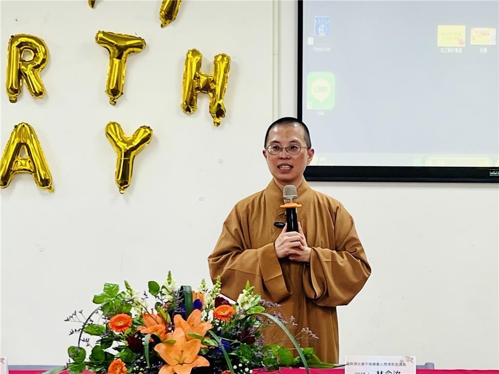林宏弦表示,講座分享佛光山開山祖師星雲大師〈五種丈夫〉、〈賢妻八法〉和〈維繫愛情的秘訣〉文章。現今社會家庭型態,年輕人很多在外地就業,家裡陪伴的是老伴。長輩除照顧好身體,還要留給子孫什麼?做志工讓自己獲得健康,還能修「德」跟「福報」,嘉惠子孫。藉由三位與談人的生命體證,希望讓大家能得到啟發及受用。
