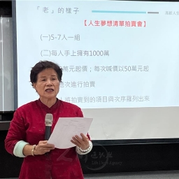 在講授《論老年》一書時,孫智辰強調只要保持熱忱和勤勉,不斷學習新事物,老年生活依然可以精彩,充滿生命的意義和價值。透過「人生夢想清單拍賣會」分組體驗,思考人生中最重要的事情。