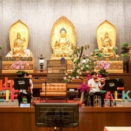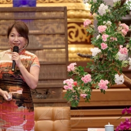 王瑞芹以動畫《我們這一家》「花媽」、以及《蠟筆小新》「野原美冴」的聲音開場,熟悉的語調引發全場驚喜與笑聲。指出,聲音是每個人獨一無二的名片,若能善用呼吸、共鳴與情感,話語便能成為療癒與激勵的力量,正是「自利利他」精神在人間佛教中的實踐。