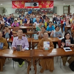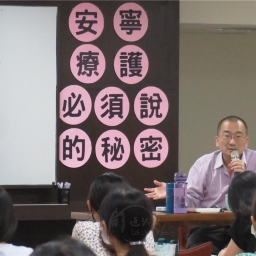 彰化社區大學5月3日舉行公民素養周–專題講座,邀請台灣安寧照顧協會理事許禮安主講「安寧療護必須說的秘密」,副校長妙宥法師帶領逾100位聽眾全程聆聽受益:「尊重自然法則就能善終,善終來臨之前,更重要的是要追求善生和善別」。