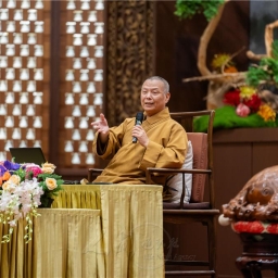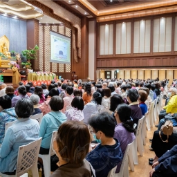 講座結尾,談及佛光山在文化、教育、學術、藝術、體育等多元面向的弘法發展,並笑談自己作為首位為中華職棒開球的出家人,以行動推廣人間佛教。感恩星雲大師讓其出家受戒,40年來學習無數,誓願繼續推動人間佛教。