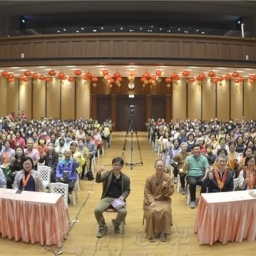 彰化社區大學2025年「生命教育」系列講座,4月11日邀請華語首席故事教練許榮哲,運用故事蘊含的啟發與人生結合,講說「把人生活成好故事」。副校長妙宥法師帶領住眾法師及現場及線上觀眾共約500人一同聆聽。