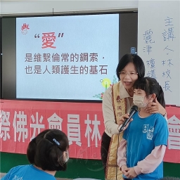 林灑津勉勵學生,因為愛是維繫倫常的鋼索,也是人類護生的基石,所以要付諸行動孝順父母,更要時時行三好,在良善的關係裡生活會更美好。