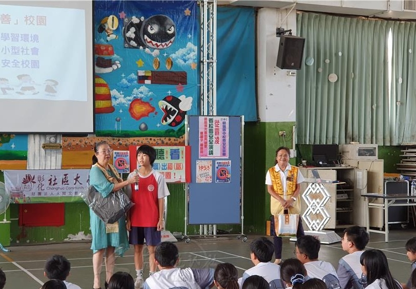 彰化社區大學11月6日於彰化縣明倫國中舉辦生命教育講座,邀請教育部生命教育講師陳璿宇分享「從霸凌看校園安全」主題,帶領168位七年級學生齊心呼籲「勇敢說不,霸凌止步」。