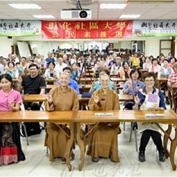 妙宥法師表示,彰化社大在春、秋二季各辦理一週的公民素養講座,目的是希望學員在課堂之餘,能藉由不同類型的講座,增加知識涵養與豐富生命的深度,歡迎大家把握因緣參與課程。社大「口口相傳」口琴班張家盛師生與「台鳳有情口琴趣」學員共同演奏〈望春風〉,為講座揭開序幕。