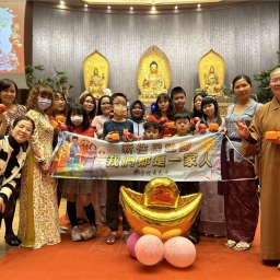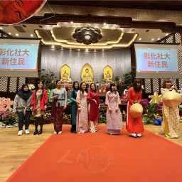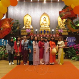 彰化社區大學「我們都是一家人」新住民團員20人懷著欣悅心情回娘家,穿著傳統服裝創意進場,展現異國風情,歡喜參加2月18日佛光山福山寺暨彰化社區大學「新春團拜」活動。
