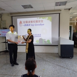 彰化社區大學偕同國際佛光會中華總會秀水分會5月28日於彰化縣明正國小舉辦校園講座,邀請彰化社區大學快樂讀書趣講師陳璿宇主講「從霸凌看校園安全〜跟霸凌Say Goodbye」,講師以霸凌影片說明「如何拒絕霸凌,營造溫馨安全的校園。」學務處主任林佳賢及4年級師生近百人參與講座。