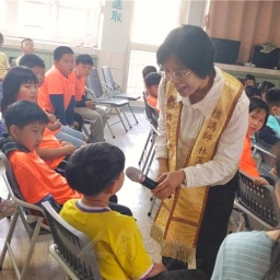 校長李樑吉頒贈感謝狀,林灑津及花壇分會會長陳篤居代表接受;李樑吉表示,學校除重視學生課業,更重視從小深耕品德教育,申請三好校園,通過永續發展品德教育揚帆學校認證;感謝佛光人蒞校引導學生正確認識電玩,避免荒廢功課及傷害眼睛。陳篤居說,欣喜將承擔會長的第一場校園講座奉獻給僑愛國小,透過檀講師精采講座,引導學生建立正確的人生觀。