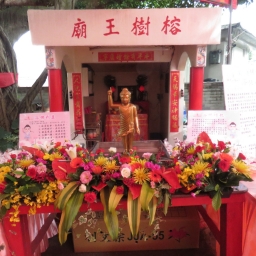 楊進羿說,1983癸亥年8月28日完成「榕樹王廟」整修至今,祀奉樹王公、石頭公二尊神尊,是居民信仰中心,與對面半山腰上的土地公共同守護居民,每年農曆八月二日搭戲棚表演布袋戲酬神。期能重塑植樹、建廟近60年的史蹟,編輯成「轆山坑榕樹王廟的故事」,發展成為觀光打卡熱點,吸引更多人前來共沐神恩。