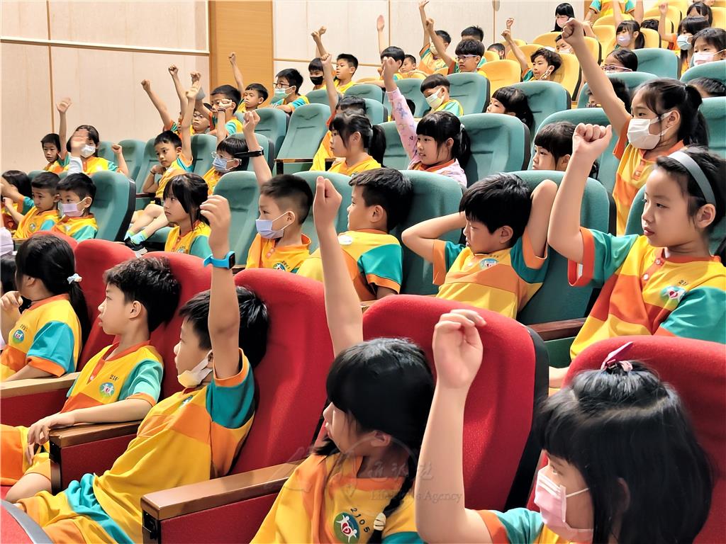 講座一開始,陳璿宇提問:「什麼是三好?生活中該怎麼實踐三好?」並引導學生理解:「三好」就是身做好事、口說好話、心存好心。有學生疑惑:「我只是二年級的小朋友,怎麼做好事?」有學生表示在家會幫忙洗碗、曬衣服。講師鼓勵孩子:「做好事不分場所,家裡就是最好的開始。」在學校幫助老師、同學或主動問候,從日常小事做起,就是創造幸福生活的開始。