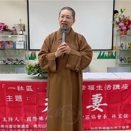 如輝法師分享,小時候常看父母親一吵架就摔傢俱、碗盤,母親自從學佛後,個性大幅改變,開始懂得容忍,父親也跟著收起易怒的脾氣。法師說,這也促成了自己的學佛之路。勉勵眾人每天行三好:「做好事、說好話、存好心」,讓自己的生活過得更幸福美好。
