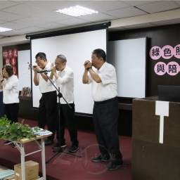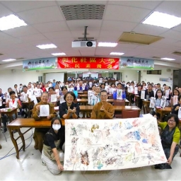 副校長暨佛光山福山寺住持妙宥法師表示,讚許師生精進向學導入生命中的各種潛能,透過與大自然的連結,淨化身心靈並內省智慧,引發鼓舞人心的共鳴。彰化社大口琴社張家盛老師帶領師生群吹奏〈南海姑娘〉,揭開講座序幕。