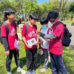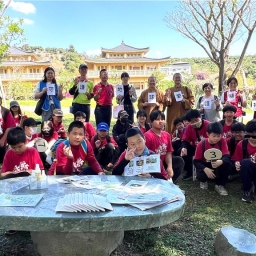「佛教植物園區」教育推廣處副主任有禮法師,以活潑互動的方式引導學生認識佛教植物,並透過「玄奘大師取經植物篇」遊戲,讓學生們分組找出植物的果實、花與樹的對應關係,再完成「愛護植物」或「守護地球」的字句配對,寓教於樂,深化環保意識。