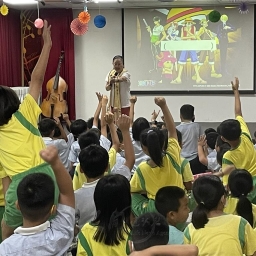 陳璿宇詢問學生「你的休閒是甚麼?」學生勇於舉手分享「打球、騎自行車、睡覺、打電玩…。」利用休閒活動大挑戰Q&A與學生提問互動,現場搶答的氣氛非常熱絡。從《西遊記》到金庸武俠小說,「五月天」的音樂及米勒的畫作,雖是小學生,對於每個提問都能精準地回答。