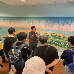 林賜勳講述「乙未戰爭紀念館」的故事,使學員了解八卦山作為歷史古戰場的背景:自清代以來,該地曾歷經多場民變與戰役,1894年甲午戰爭清廷戰敗、台灣割讓給日本後,各地掀起抗日保台運動,當時義勇軍與北白川宮能久親王在八卦山爆發激戰,雖最終不敵日軍,卻展現不屈不撓的民族精神。