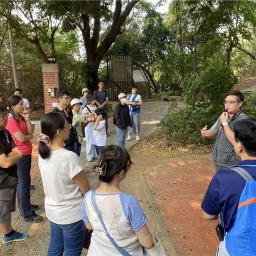 林賜勳領眾步上昔日的「彰化神社參拜道」(現為八卦山文學步道)並說,彰化神社為紀念北白川宮能久親王而建,雖今已無原建築遺跡,但能想像當年神社莊嚴的風貌;彰化從新石器時期、清代到日治時期,學員可從不同角度理解八卦山的文化脈絡。