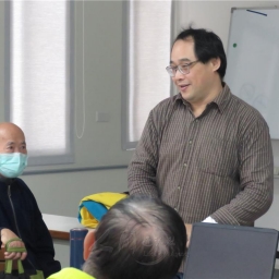「台灣鐵道探索小旅行」班級3月21日在民族分校進行實體課程,楊肇庭播放照片,詳細介紹台灣鐵路公司新式列車。他表示,自己是忠誠的鐵道迷,加入半線鐵道文史工作室團隊,在鐵路局擔任義工數十年,維護旅客安全及引導人流。