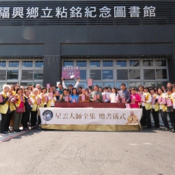 彰化社區大學副校長暨佛光山福山寺住持妙宥法師3月13日帶領快樂讀書趣社員國際佛光會彰化福興分會督導許秀麗,共同捐贈《星雲大師全集》給彰化縣福興鄉立粘銘紀念圖書館,鄉長蔣煙燈代表接受,70人與會見證。助印代表人許秀麗表示:「感念佛光山開山祖師星雲大師弘法恩德,邀請會員大眾發心助印,期許拋磚引玉,帶動更多善士共襄盛舉,使大師畢生的智慧結晶,能造福所有法界眾生。」
