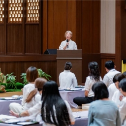 妙宥法師開示,茶是一種修行的語言,泡茶專注、奉茶恭敬、品茶覺察,每一刻的心念皆是止觀之道。法師進一步指出,禪心的起點在於「反求諸己」。正如法眼禪師所言:「丙丁童子求佛」火性的童子本具火,卻仍向外尋火,提醒世人莫於心外求法。並提及:「喝茶時,從反求諸己到擴大自己」,正是修行的次第。當一念靜下,茶香中可見自心起伏;再從覺照中擴展胸懷,包容萬物。唯有透過日常覺察,讓心如茶湯般澄明,止觀一如,方得茶禪一味。